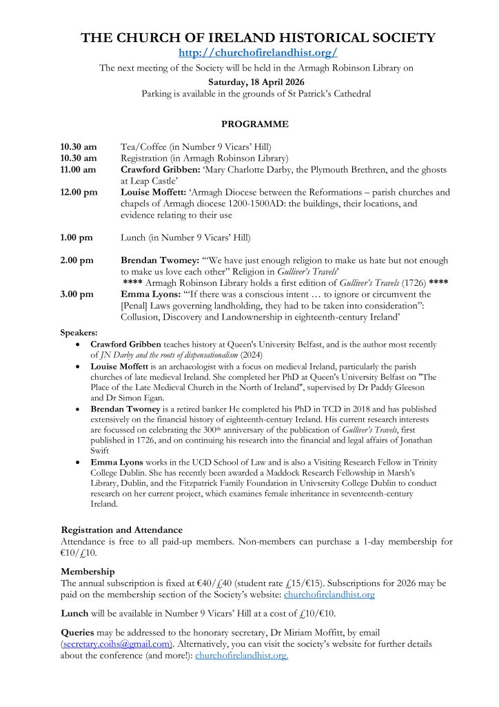 All members of the public are welcome to join the Church of Ireland Historical Society. For further details, please visit our Membership page.